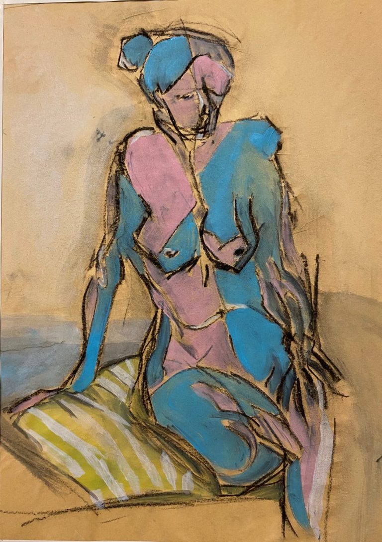 L. Lady sitting Charcoal on paper