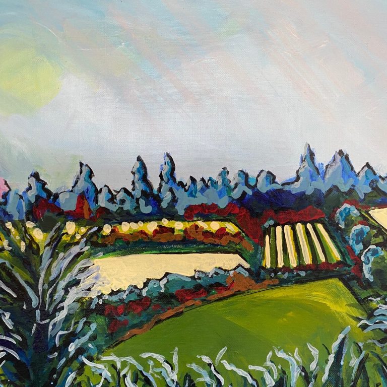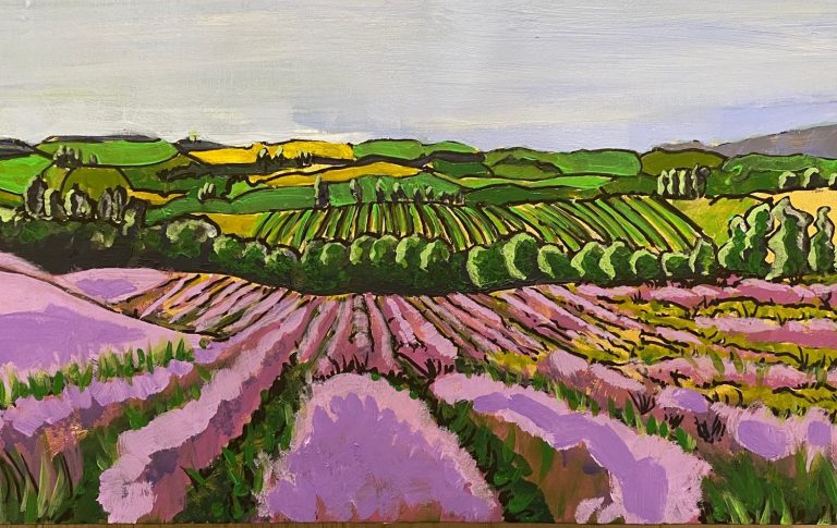N. Landscape purple Acrylic on metallic sprayed canvas 62x30cm